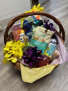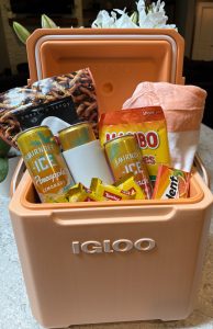 Get ready to soak up the sun with this vibrant, beach-themed raffle item packed with everything you need for a perfect day by the water! Featuring a stylish apricot-colored Igloo cooler with MaxCold insulation (keeps your drinks and snacks chilled for up to 2 days!), refreshing wine coolers, a plush oversized cotton beach towel that’s quick-drying and fade-resistant, a sleek slim can koozie, and a fun mix of orange-colored snacks — this cooler brings the beach vibes to you.